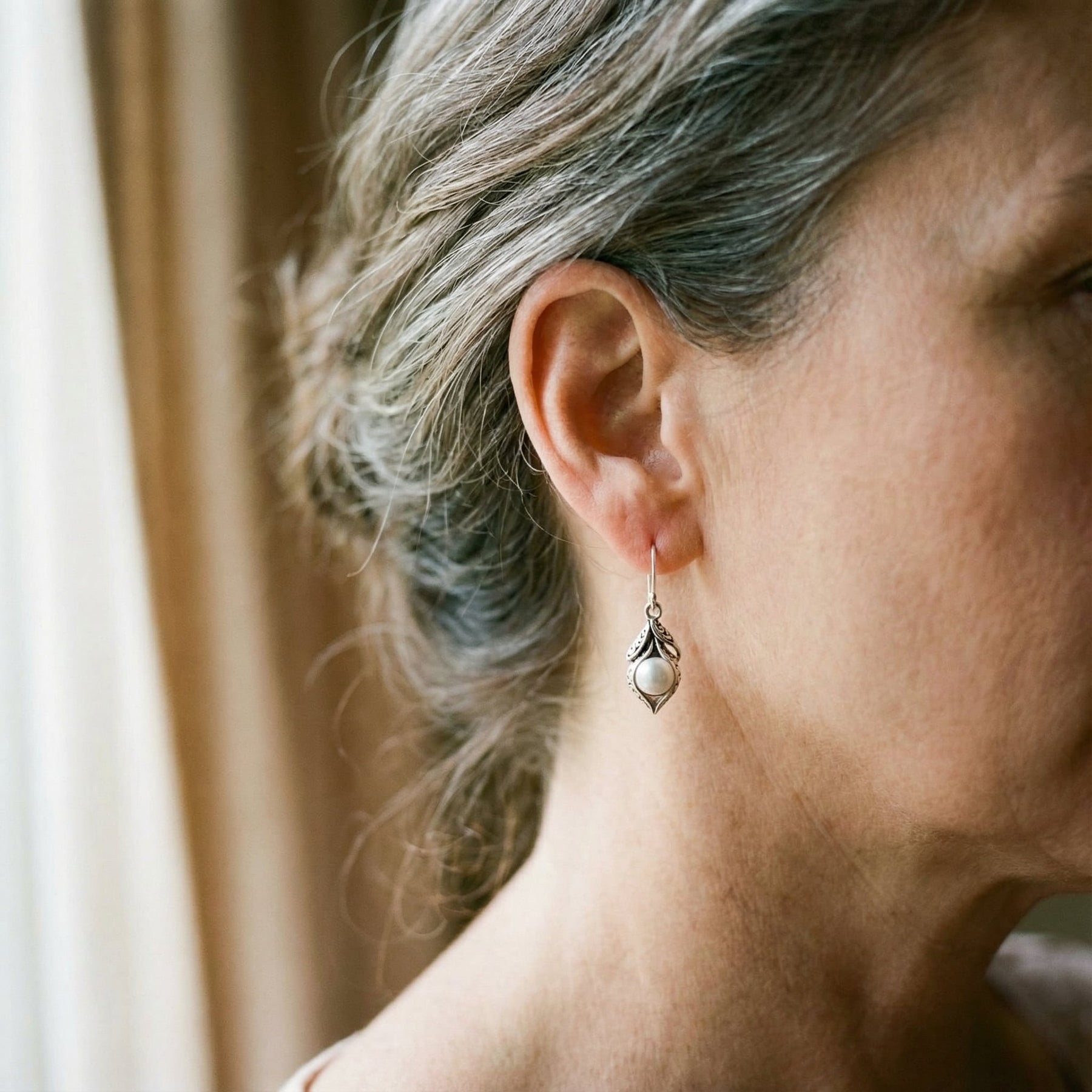 Classic Silver Earrings Adorned with Dangle Pearls