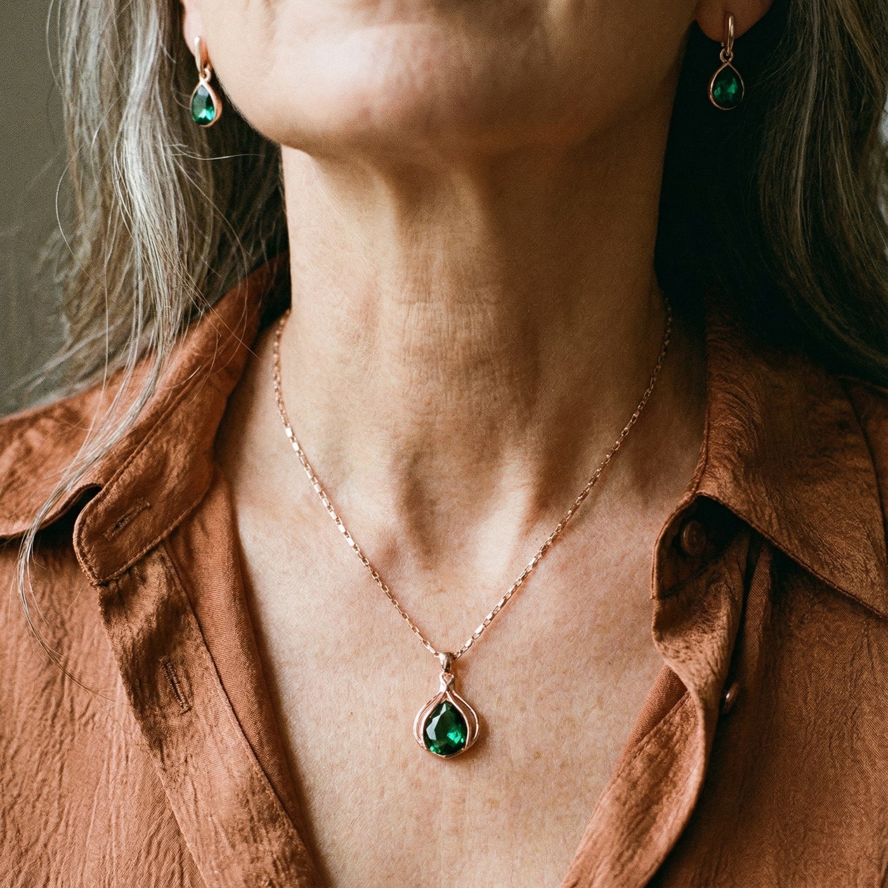 Green and Gold Crystal Necklace and Earring Set